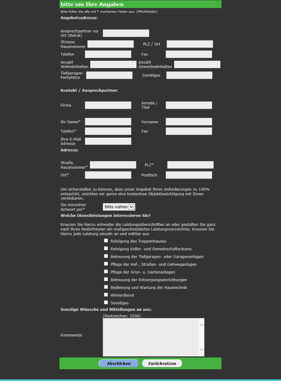 Bitte füllen Sie alle mit * markierten Felder aus. (Pflichtfelder)